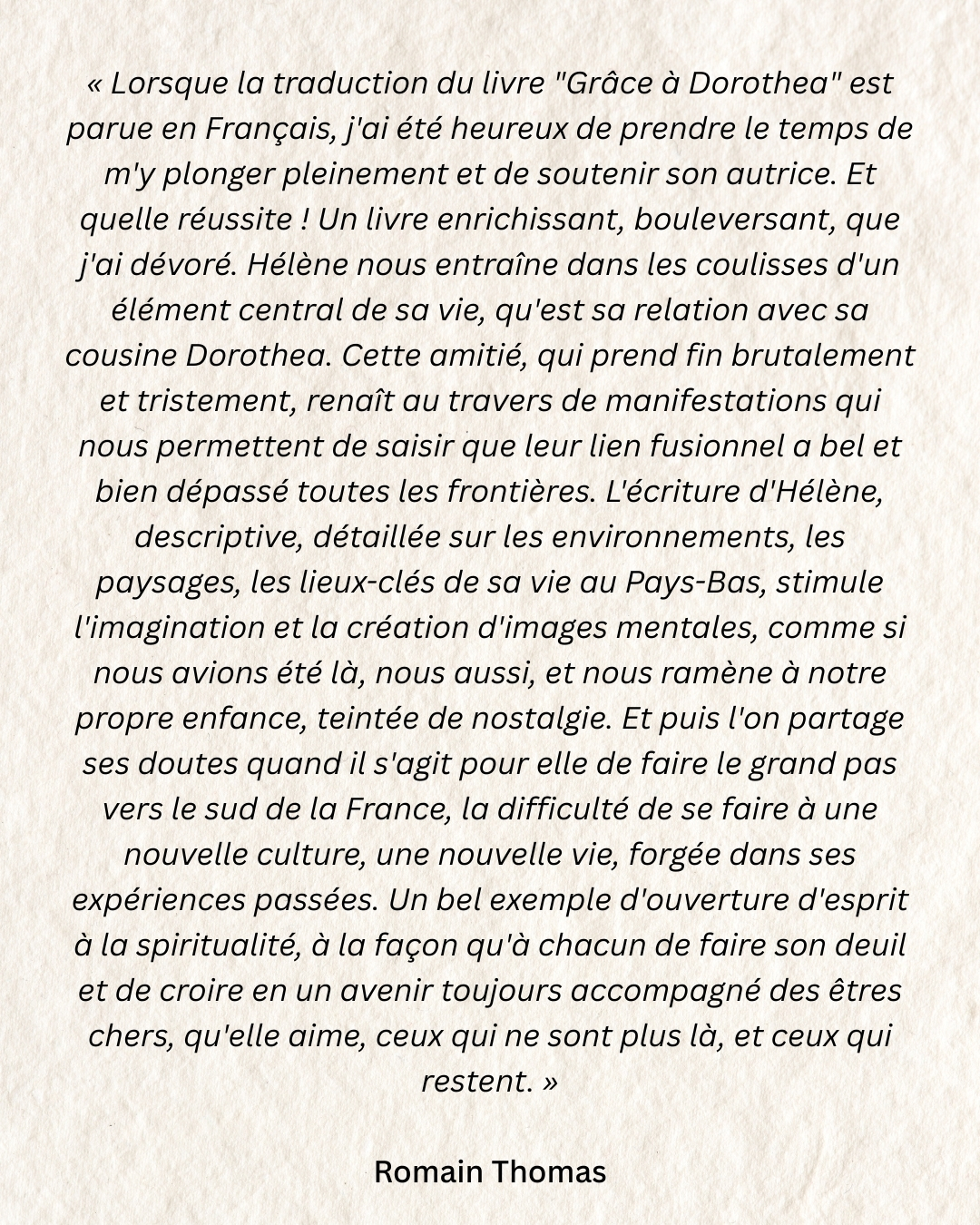 Tels sont les principaux thèmes de ce livre novateur qui montre au lecteur qu’il existe de nombreuses frontières que l’on peut franchir. Celle entre la vie et la mort, entre ce qui est considéré comme possible et comme impossible, la frontière entre le passé et le présent et, bien sûr, la frontière entre les pays